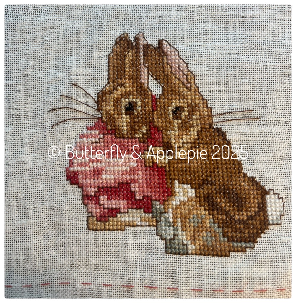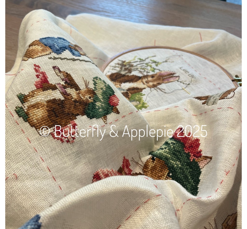 For this occasion I had to find a birth gift. Found another Beatrix Potter cross stitch project on EBay. When the leaflet arrived in my snail-mail post box I could start working on The Tale of Benjamin Bunny.