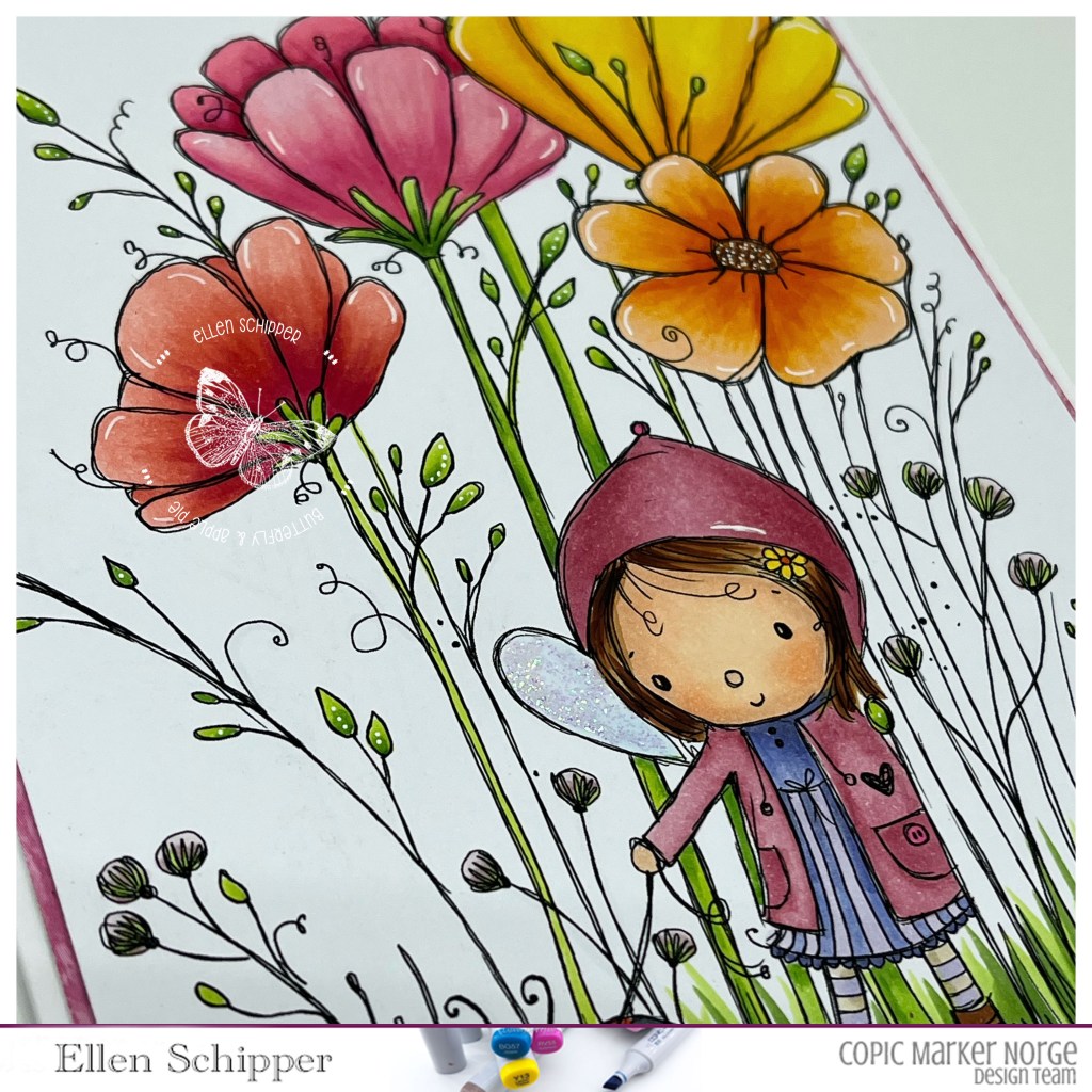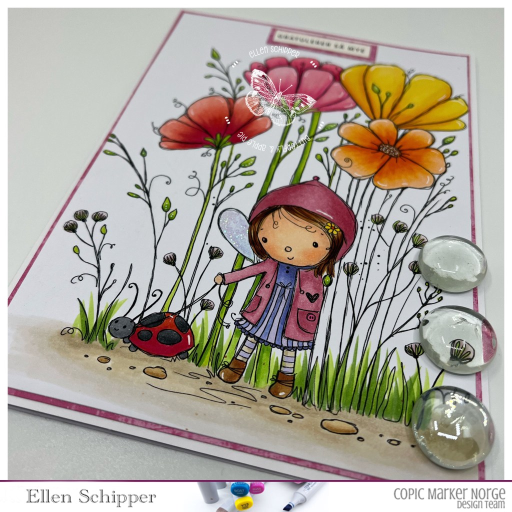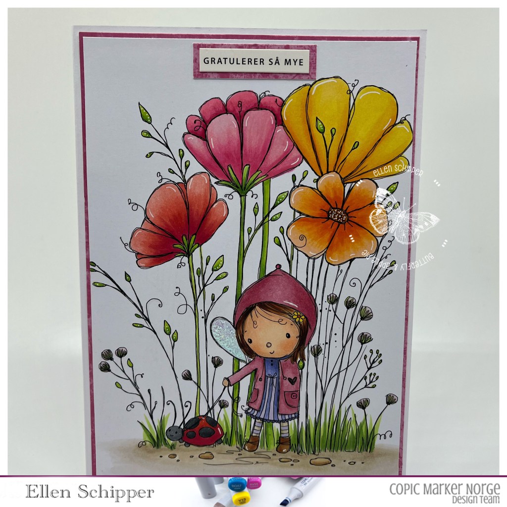 I had some minutes (like app. 90-120 or so….) to color and finish this card for the challenge on Copic Marker Norway.