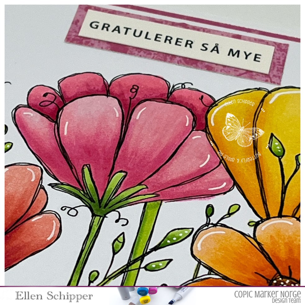 I had some minutes (like app. 90-120 or so….) to color and finish this card for the challenge on Copic Marker Norway.