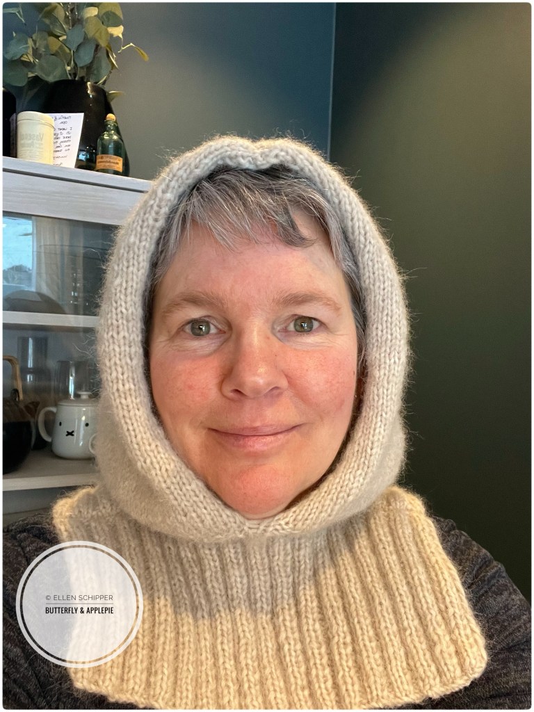 So I found this pattern for a hoody and tell me, how nice is this! It even has a collar what practically means you don’t need a scarf ( although I think a scarf is nice to have). You can easily take it off by pushing it backwards. There is more than enough space to not make it itchy and it keeps you nice and warm. It’s knitted with Alpaca Bris by Vinking Garn. This yarn is a mixture of 60% baby alpaca, 11% merino wool and 29% nylon.
