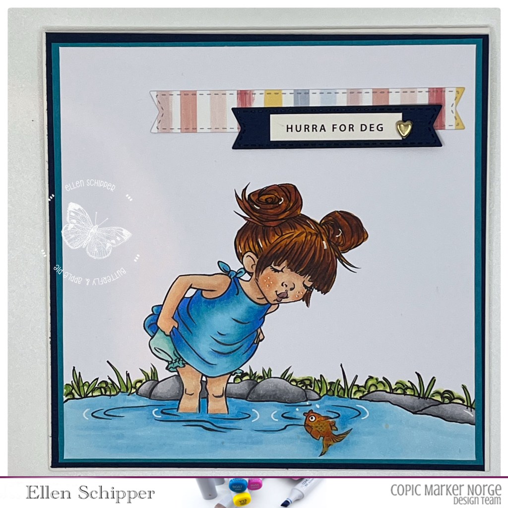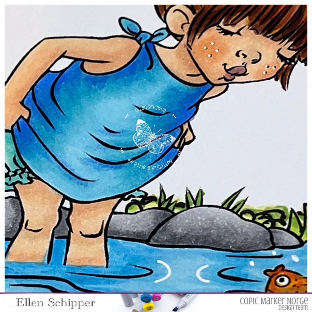 Unfortunately I did not keep a record of the Copics I used on this one but obviously there was a lot of blues.