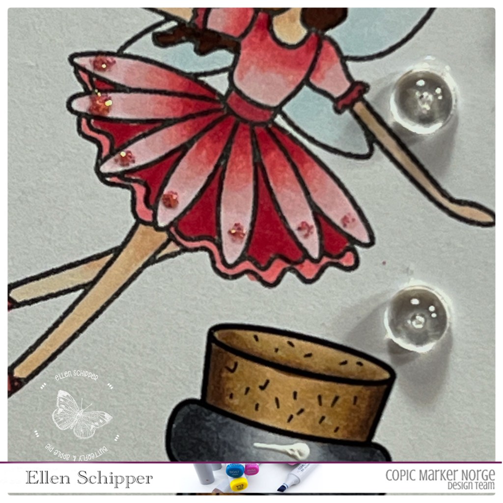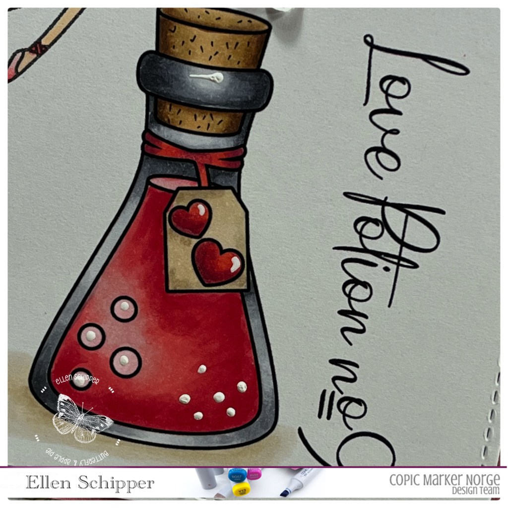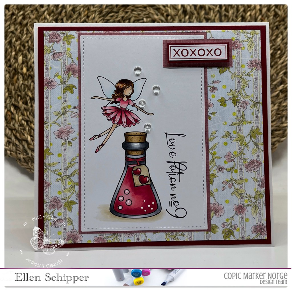 The card I made is build up with a digital stamp (the bottle of potion) and the fairy some a real stamp from the stamp set Fairy Best Friend by My Favorite Things.